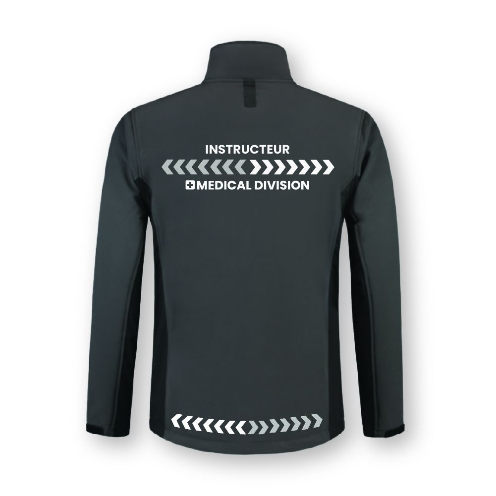 Bedrukt met de logo en functie van Medical Division in witte en reflectieve accenten.