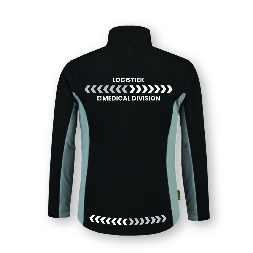 Bedrukt met de logo en functie van Medical Division in witte en reflectieve accenten.